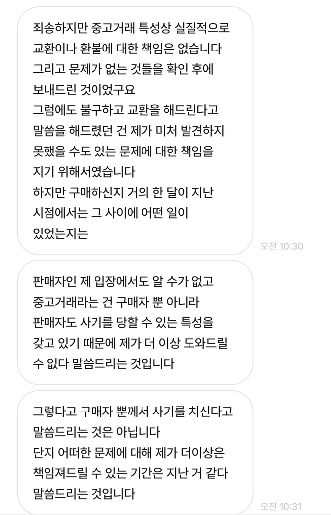 중고거래로 물건을 샀는데 하자가 있었습니다.