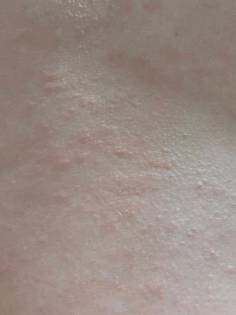 얼굴, 목 제외하고 팔과 몸통에 울룩불룩한게 올라옵니다.