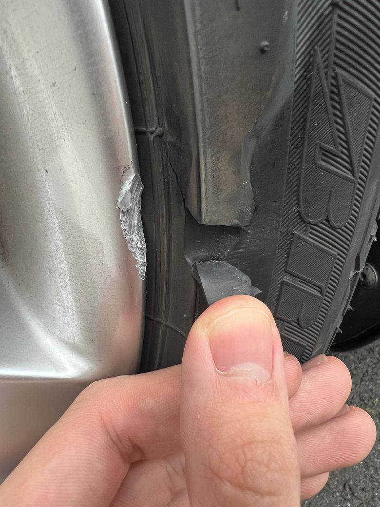 오른쪽으로 커브돌면서 뒷타이어와 휠이 연석에 부딪혔는데 타이어만 교체하면 될지 휠하고 같이 교체해야하는지 모르겠어서 질문 드립니다 또한 바로 교체를 못 하는 상황이라 단거리 주행을 해도 되는지 궁금합니다