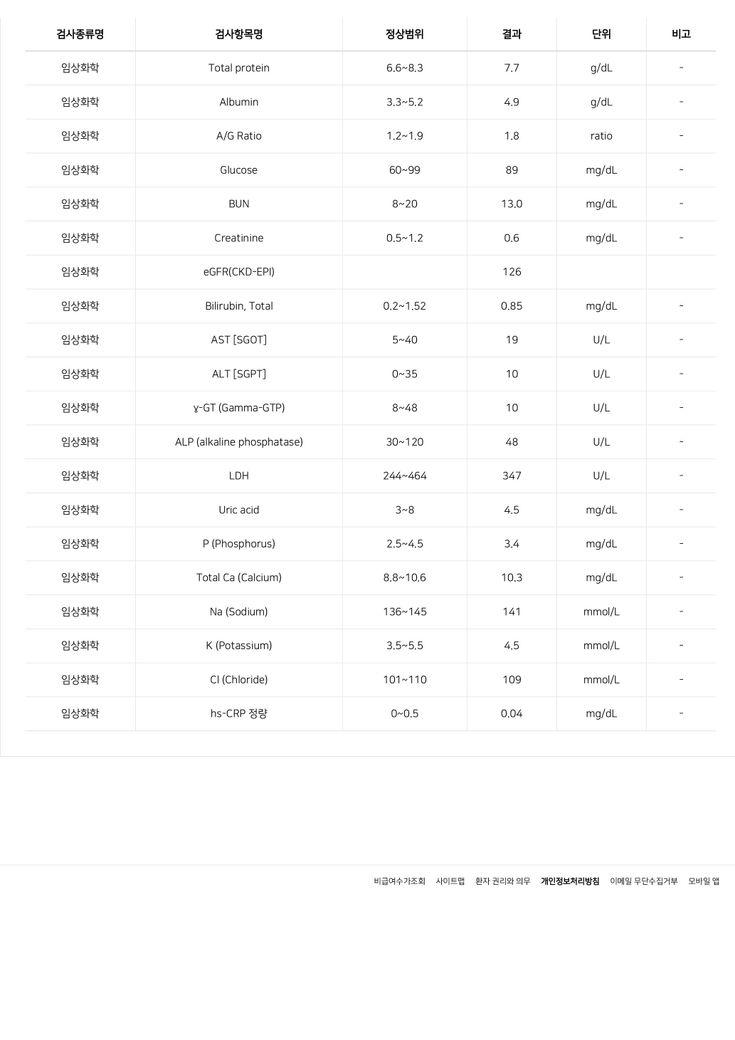 피검사 결과 확인 부탁드립니다 이상이 있나요?