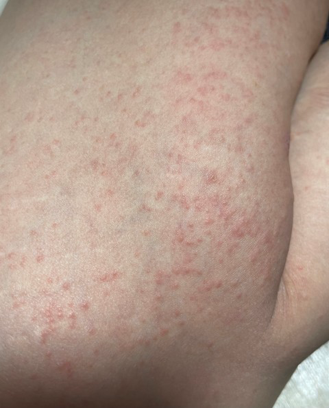 사진의 소견을 통해서 보았을 때에는 두드러기 양상의 피부 병변이라기 보다는 모공각화증이 가장 의심스럽습니다. 정확한 감별 진단을 위해서는 피부과 진료 및 검진을 받아보시는 것을 권고드립니다.