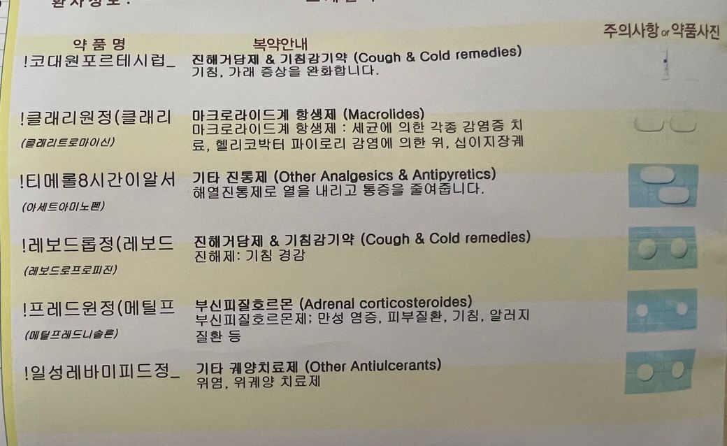 심한 목감기와 몸살로 금요일에 병원에서 처방받은 약인데요. 약만 복용하면 심장 두근거림이 느껴지고 맥박도 너무 빠르고 마치 각성상태가 된거마냥 밤에 잠도 안오고 잠들어도 금방 깹니다ㅠㅠ 몸살 증세는 완화됐는데 기침이 아직 많이 심해서 금요일,토요일치 약은 다 복용했어요..