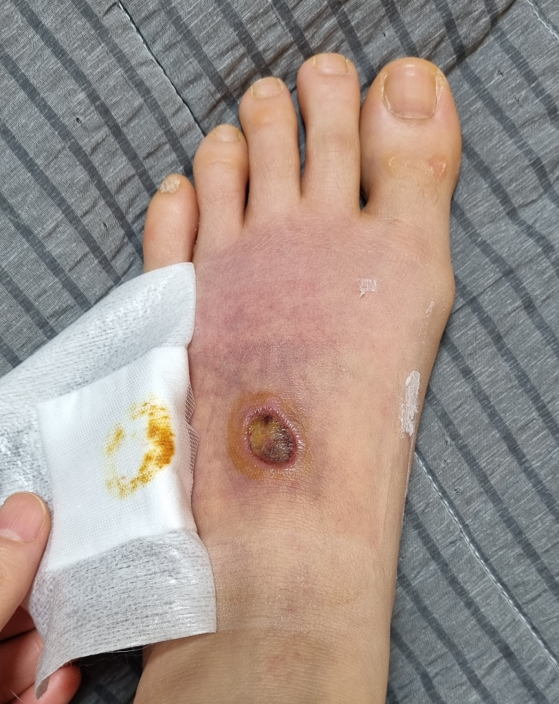 -신발이 불편해서 발등에 물집 생김 10흘 후 터짐