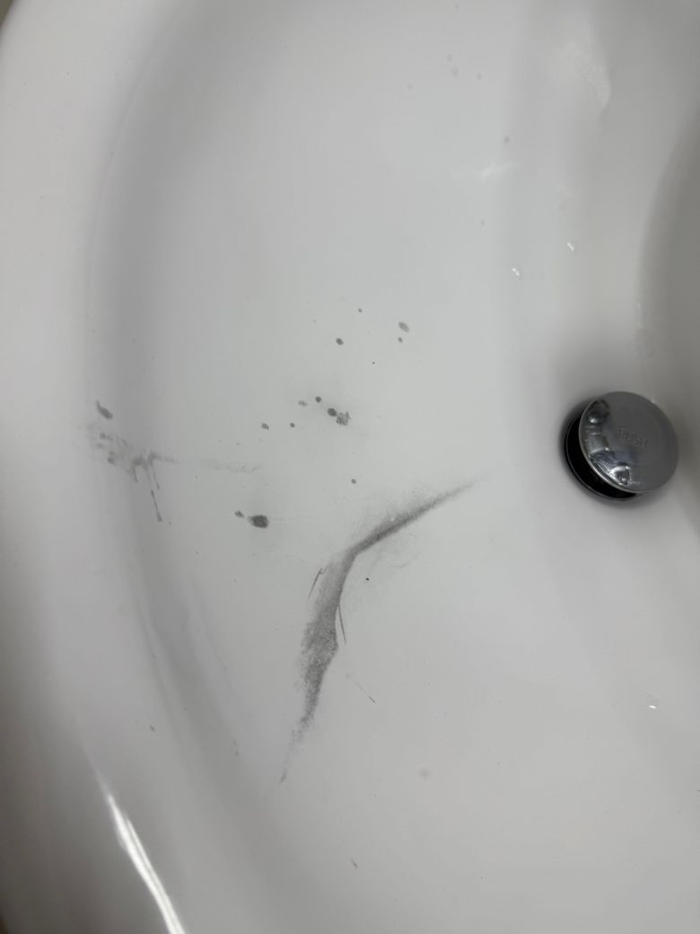 입주한 집에 세면대에 누런 얼룩이있어서 다용도 세제 뿌리고 철수세미로 밀었는데 얼룩이 회색으로 변했습니다