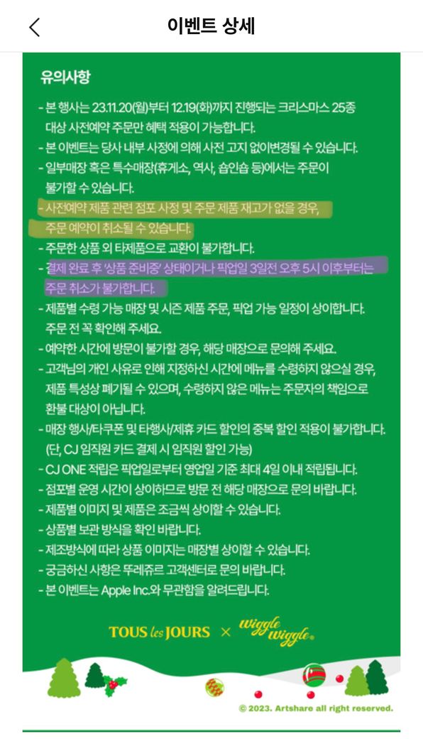 CJ 뚜레쥬르 어플로 크리스마스 케이크 사전예약했는데, 일정이 생겨서 픽업이 불가하게 되었습니다.