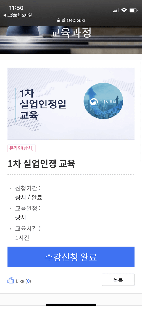 실업급여 1차 실업 인정일 동영상 교육 받았는데 이게 완료가 된건지 안된건지 몰라서 문의 드려요