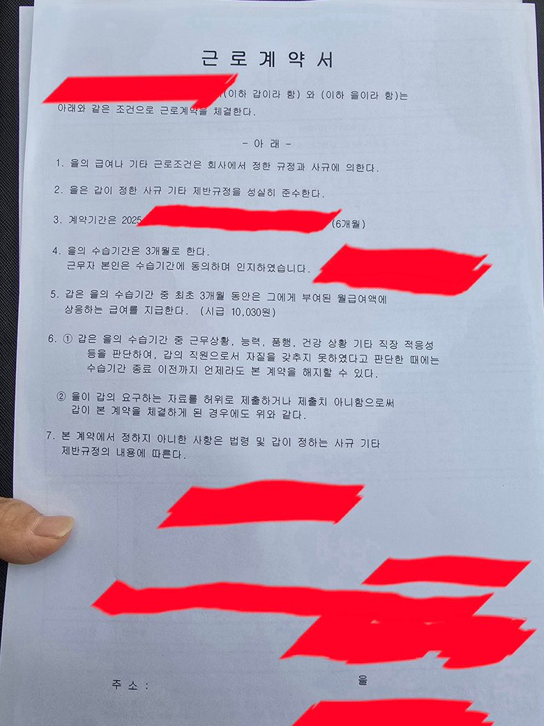 3.3% 소득공제는 프리랜서 사업소득자에게 원천징수하는 것인데 근로자에게 적용하는 것은 부당한 것입니다. 계약서의 명칭은 보이지 않지만 내용으로 보아서는 근로계약서로 보여집니다. 근로소득세 적용과 4대보험 가입이 되어야 합니다.