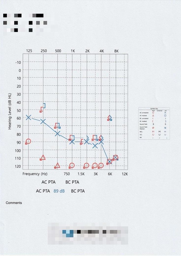어머님이 원래 청각장애가 있으신데 작년 11월 대학병원에서 청력 검사를 진행 하였는데 양쪽이 얼마나 손실 된건지 알수가 있을까요?