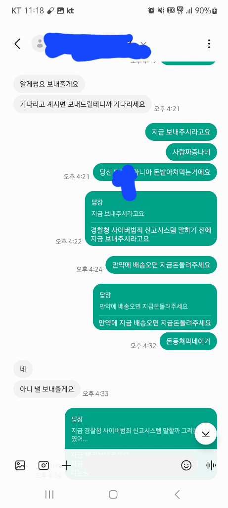 그래서 저는 화가 나서 이사람이(판매자) 욕을했죠