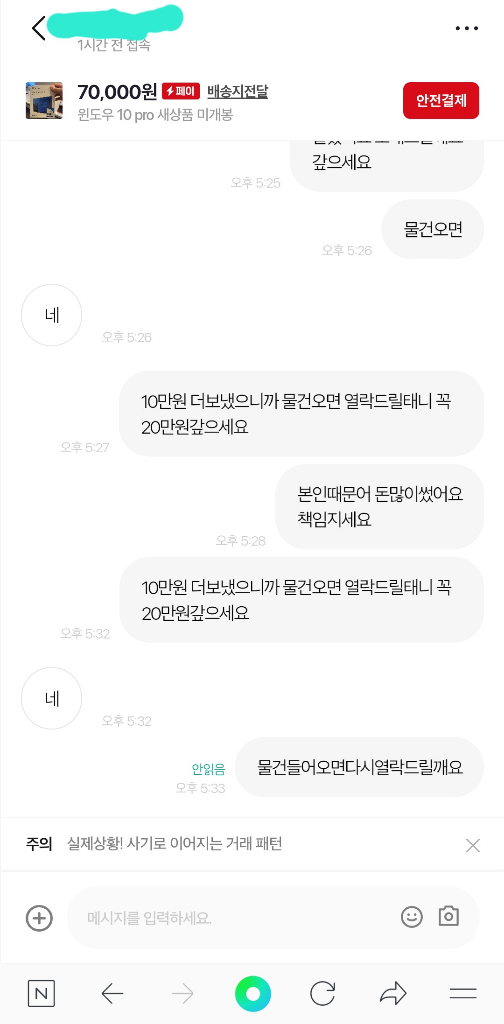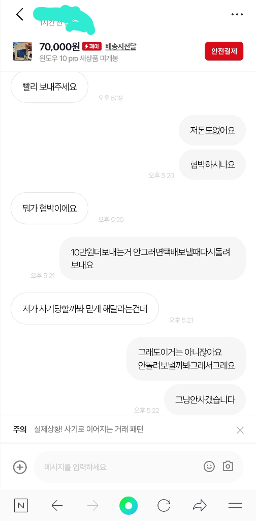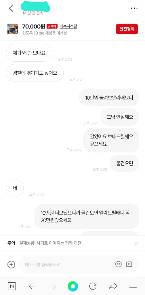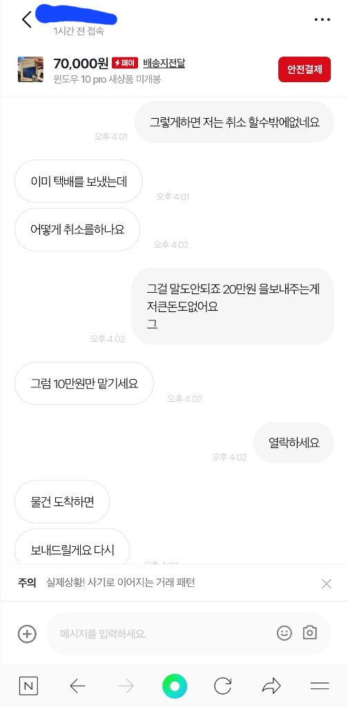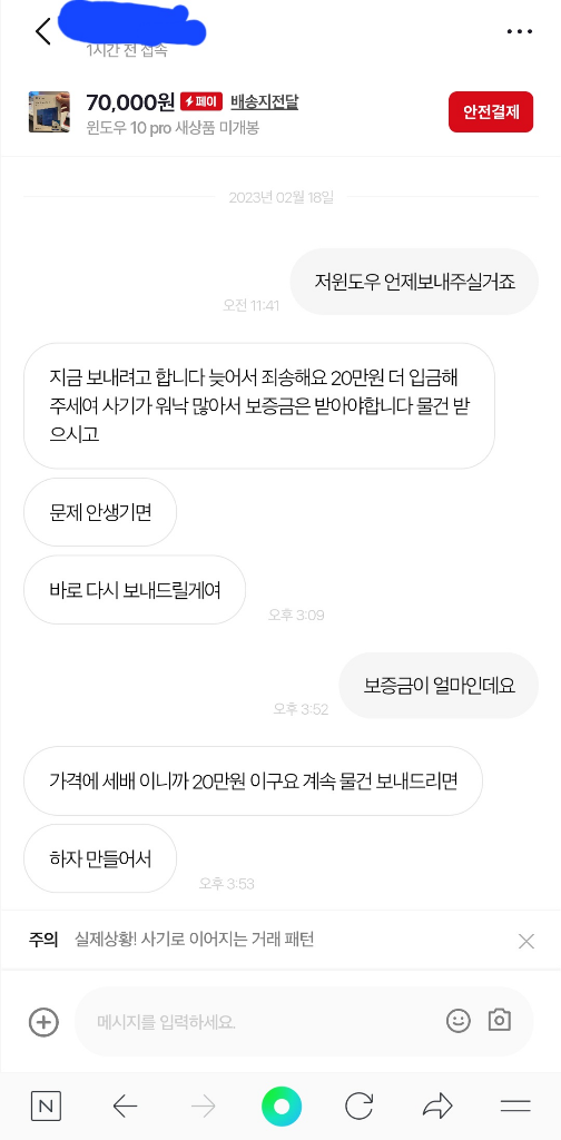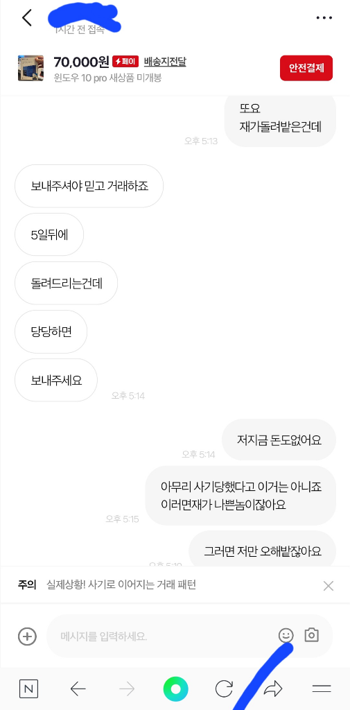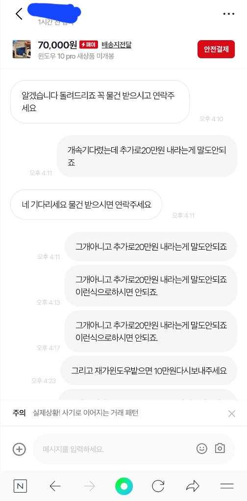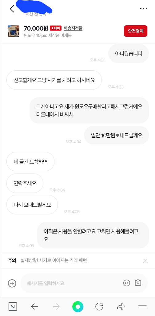 자기가 아무리 얼마전 이사람이(판매자) 사기를 당했다고 돈을 30만원 환불비랑 보증금이래요