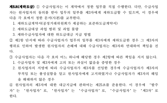 하도급 계약서 내용에 아래와 같은 내용이 포함되어 있는데요.