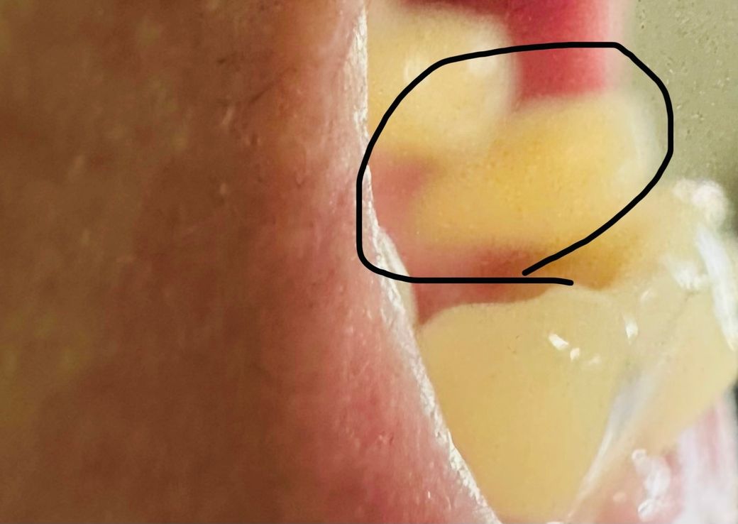 앞니 안쪽에 잇몸퇴축이 심한지 궁금합니다 양치질시 칫솔모를 세로로 세워서 왔다 갔다 반복 하는데 잇몬 퇴축이 심한편인지 알고싶습니다 (사진 수정)