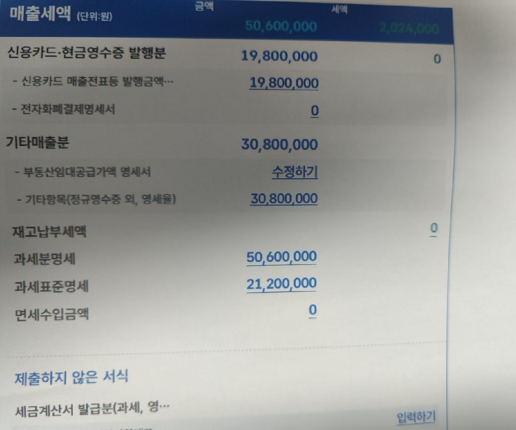 해당건으로 부가가치세 신고중이며