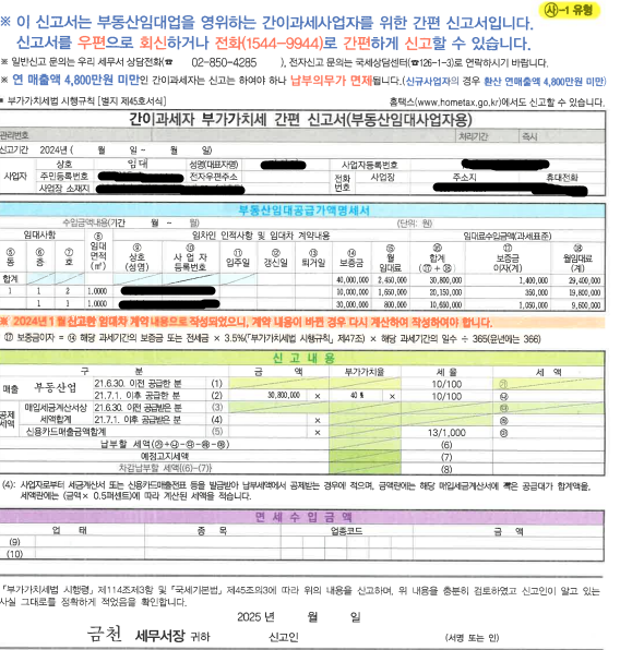 간이과세자 부가가치세 신고 중 의문이 생겨 문의드립니다.