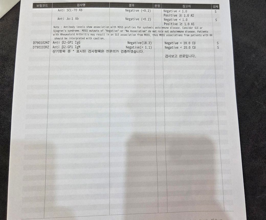 류마내과 검사결과 판독좀 부탁드립니다
