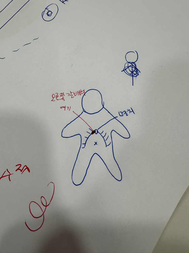 명치 오른쪽 갈비뼈 통증은 근육 늑골 주변 타박상, 늑골 연골염 혹은 위 간 등 복부 장기 문제와 관련될 수 있습니다.