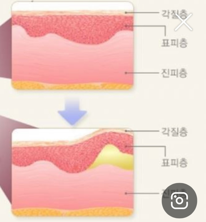 물집은 물리적인 마찰에 의해서 표피와 진피 사이가 박탈이 되고 이 사이로 체액이 차올라서 생깁니다.