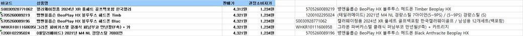 B열에 있는 상품명을 F열에 있는 상품명으로 변경되도록 하고 싶습니다.