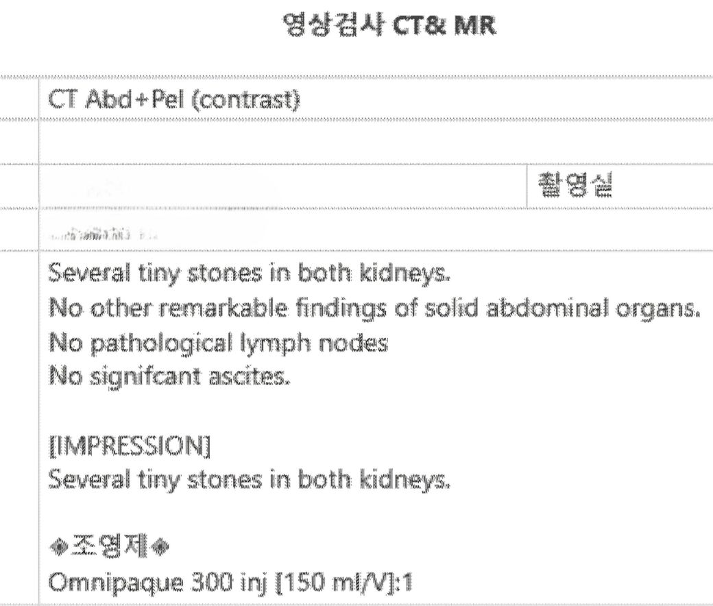 몇주후 의무기록 발급받아 Ct분석내용을 보니 양쪽 신장에 크기표기는 없이