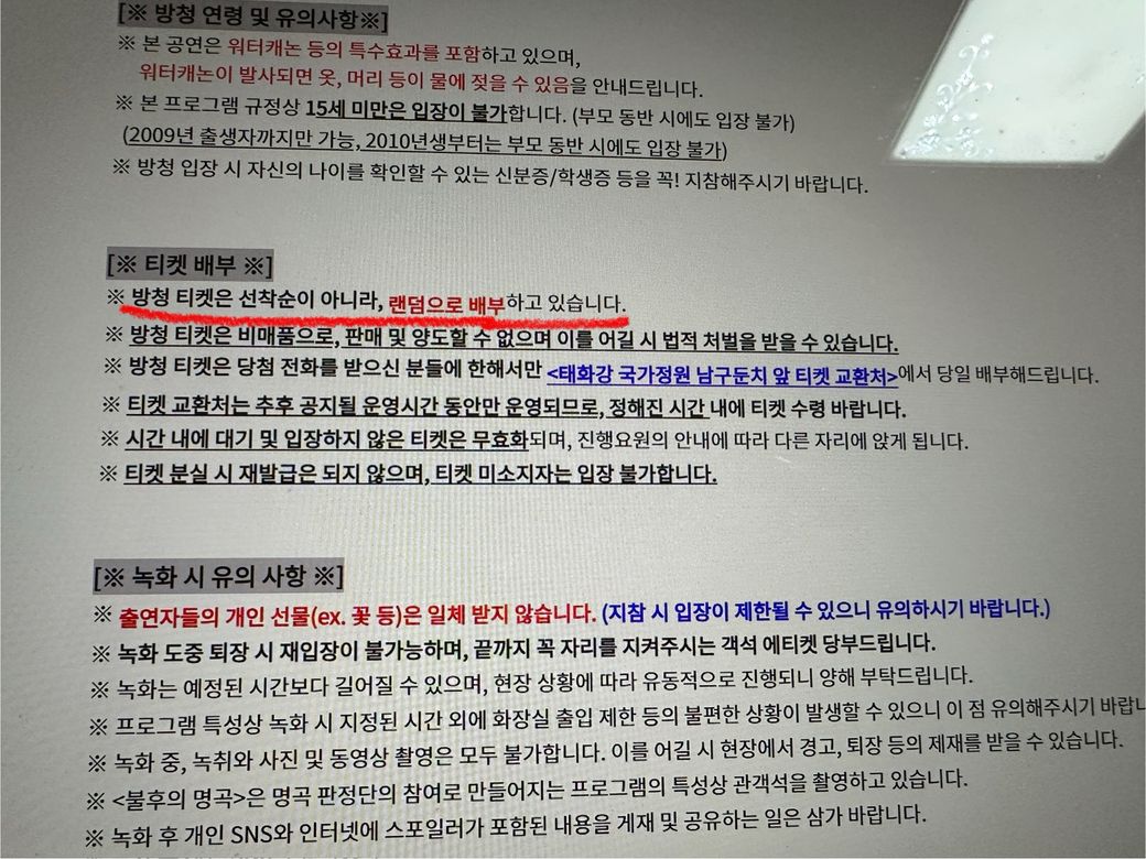 불후의명곡 방청 티켓은 선착순이 아니라, 랜덤으로 배부하고 있다는데 이게 무슨 말인가요?… 정확히 아시는분만 답변 부탁드립니다