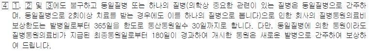 동일질병에 대해서는 첫 통원일로부터 365일 보장 후