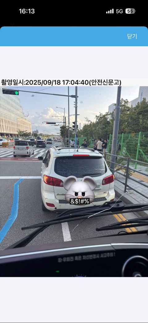 버스전용차로 황색 두 줄 실선 정차 신고 불수용