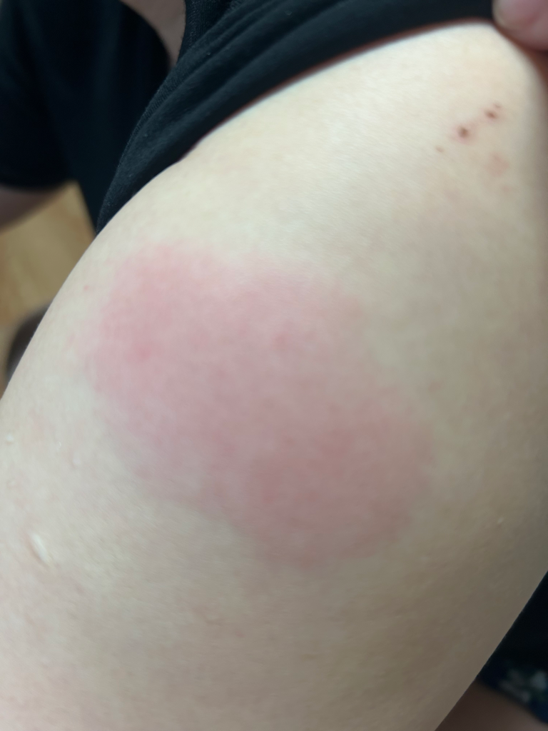 밴드 모양이 정확하지는 않으나 만일 밴드모양을 따라 발적이 생기셨다면 반창고로 인한 알레르기 반응일 가능성이 있겠으며, 반창고보다 발적이 크다면 독감 주사의 부작용으로 염증 반응이 나타났을 가능성이 있겠습니다. 후자라면 근처 의원에 가셔서 염증의 가능성 등을 확인해 보시는 것이 도움이 되겠습니다.