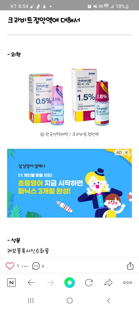 문의주신 크라비트점안액은 레보플록사신이 함유된 항생제 안약으로,세균감염을 막기 위해 처방된 것으로 보입니다.