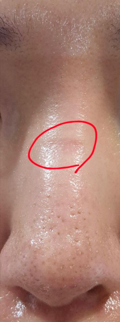 이전에는 안그랬는데 최근 며칠 마스크 착용 후 사진처럼 콧등 자국이 선명하고 만져보면 움푹 파였습니다.