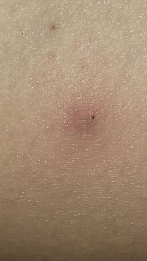 닿으면 멍든 느낌이고 작은 멍울이 느껴지는 것 같기도 해요. 크기는 새끼손톱 절반 크기.