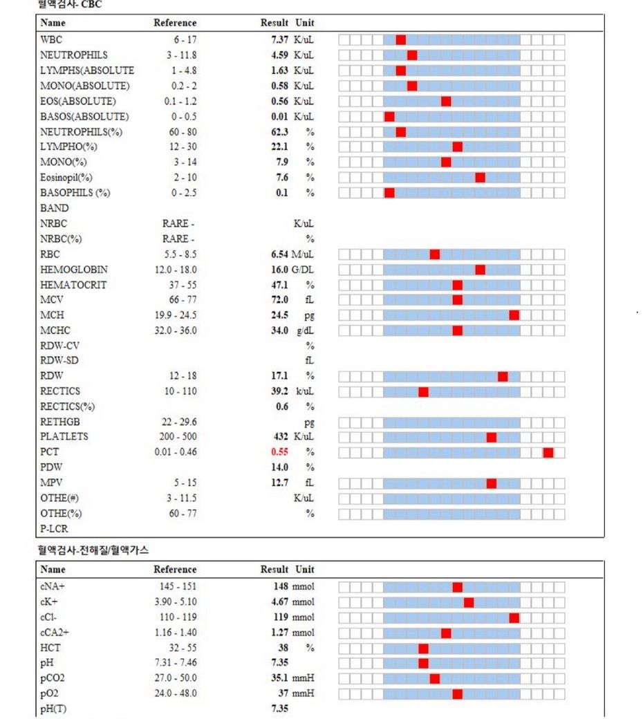 PCT는 혈소판 수치와 같이 보시는 것이 맞을 것 같네요