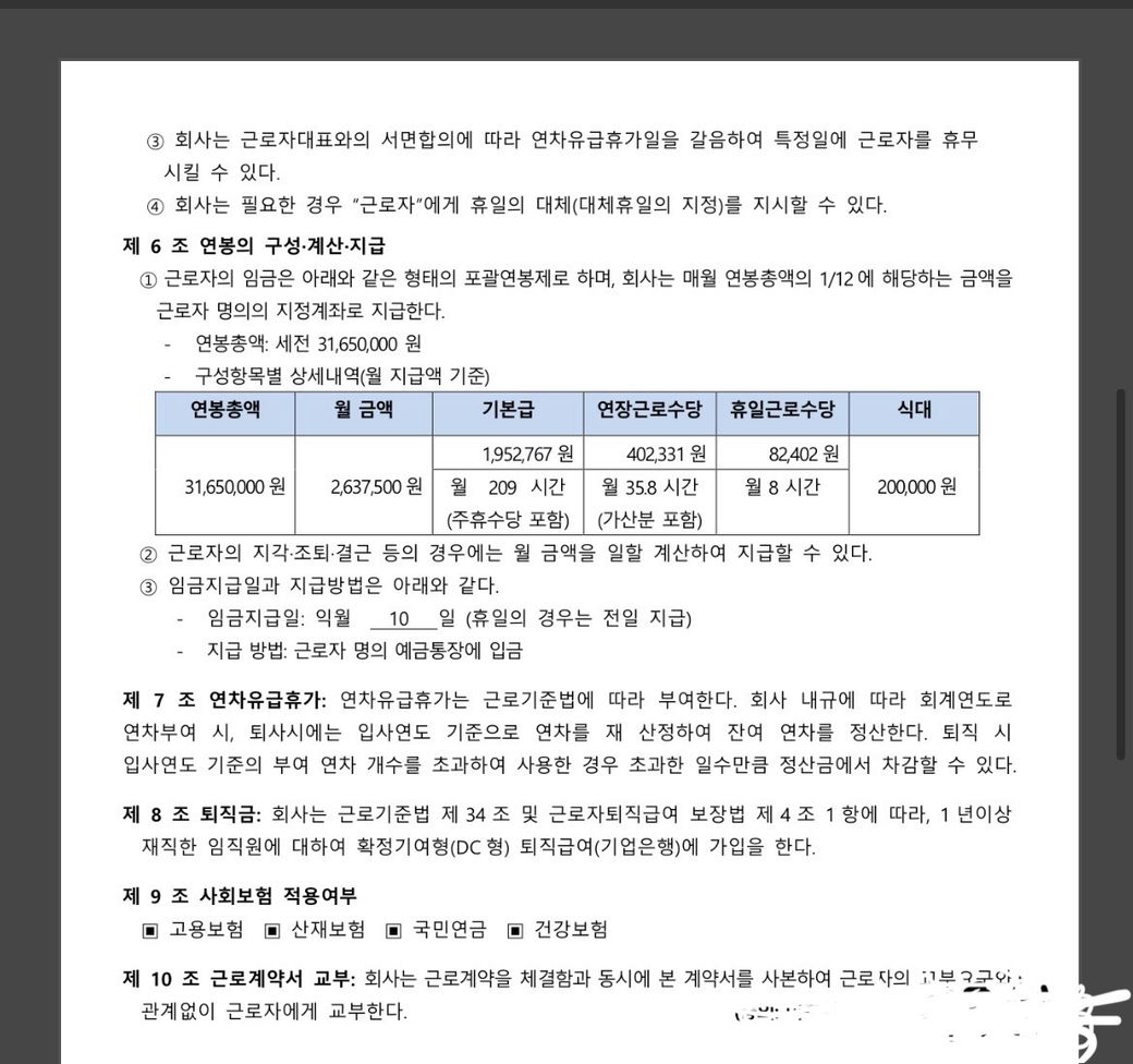 5인이상 중소기업에서 포괄연봉제로 일하고있고, 휴무는 매주 목, 금요일입니다.