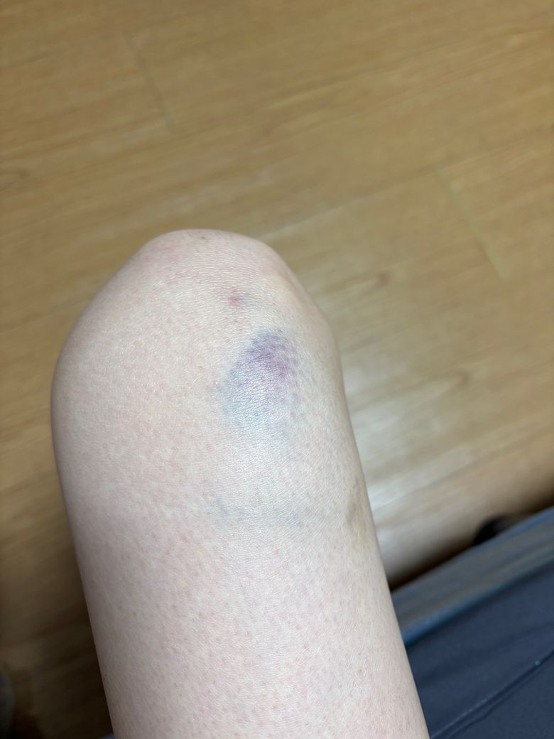 부딪힌 뒤 생긴 멍이 점점 커지고, 통증이 심해지며, 무릎 굽힘 시 불편감이 있다면 단순 타박상만으로 보기엔 약간 이례적인 경과입니다.