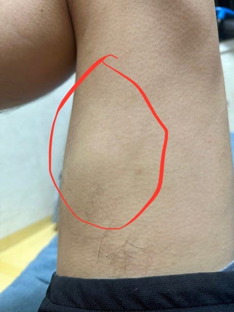 허벅지 안쩍 근육에 뭐가 튀어나왔습니다.