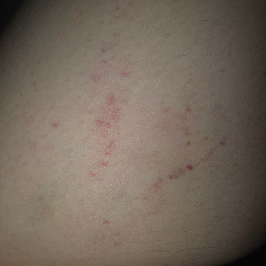 붉은 점들이 피부에 생겼다면 몇 가지 가능성이 있을 수 있습니다. 첫 번째 사진에서 허벅지에 나타난 붉은 점들은 긁어서 생긴 상처나 자극에 의한 반응일 수 있습니다. 긁으면서 피부에 자극이나 염증이 발생해 작은 홍반이나 발진이 나타날 수 있어요. 이런 경우는 피부가 긁히고 염증이 생긴 후 회복되면서 점들이 나타날 수 있습니다. 알레르기 반응이나 자극성 피부염이 원인일 수도 있으며, 건조한 피부나 습진도 관련이 있을 수 있죠