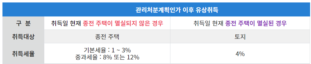 승계조합원 취득 당시에 주택 상태가 멸실이 안됬다면, 1~12%의 취득세율