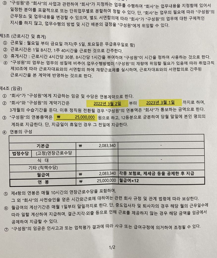 일단 근로계약서를 다시 작성하시기를 권합니다.
