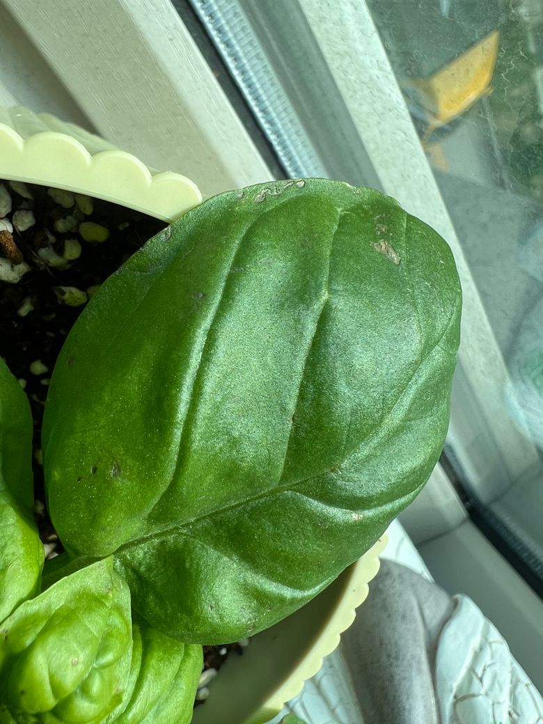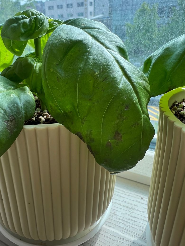 바질 잎에 상처가 났는데 원인이 뭔가요?