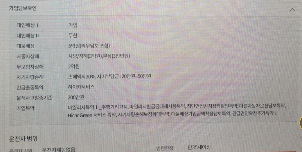 제가 차동차보험당시 가입한 내용으로 설명 좀 해주세요 ...
