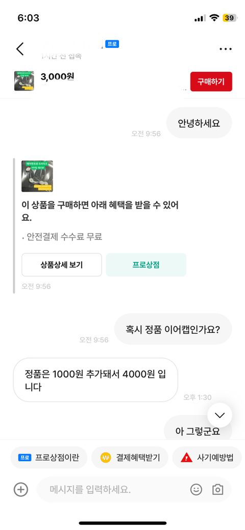 더 중요한건 제가 가품이든 뭐든 상관없이 구매했다면 모르겠는데, 제가 구매 전 정품이냐고 여쭤봤습니다. 그런데 정품은 천원 더 받는다고 하시더군요