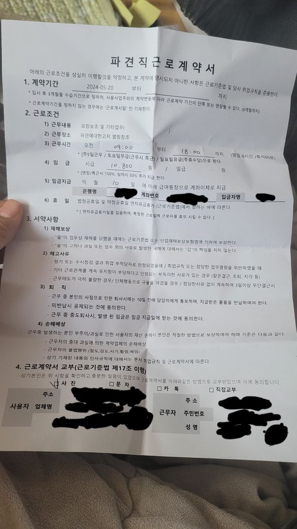 아웃소싱 파견업체에서 당일 근로계약서작성하고 타 업체에서 1일 근무를 했습니다. 부서에서 담당한 일은 자재관리로 사내 일하시는 생산자에게 자재 채워주는 일이었습니다. 우선 저는 공익판정받고 마친 신장 151인 남성입니다.