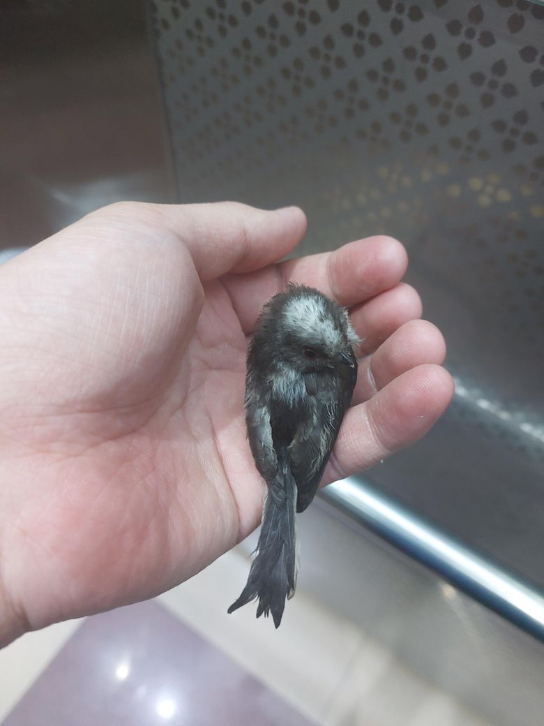 머리 중앙에 흰색털과 점은 줄이 잇는걸로 보아 새끼 오목눈이 같습니다. 새를 진료 해주는 동물병원이 근처에 있다면 데리고 방문해보셔도 좋을것 같지만 없다면 그냥 자연에 두시는것이 좋을듯 합니다.