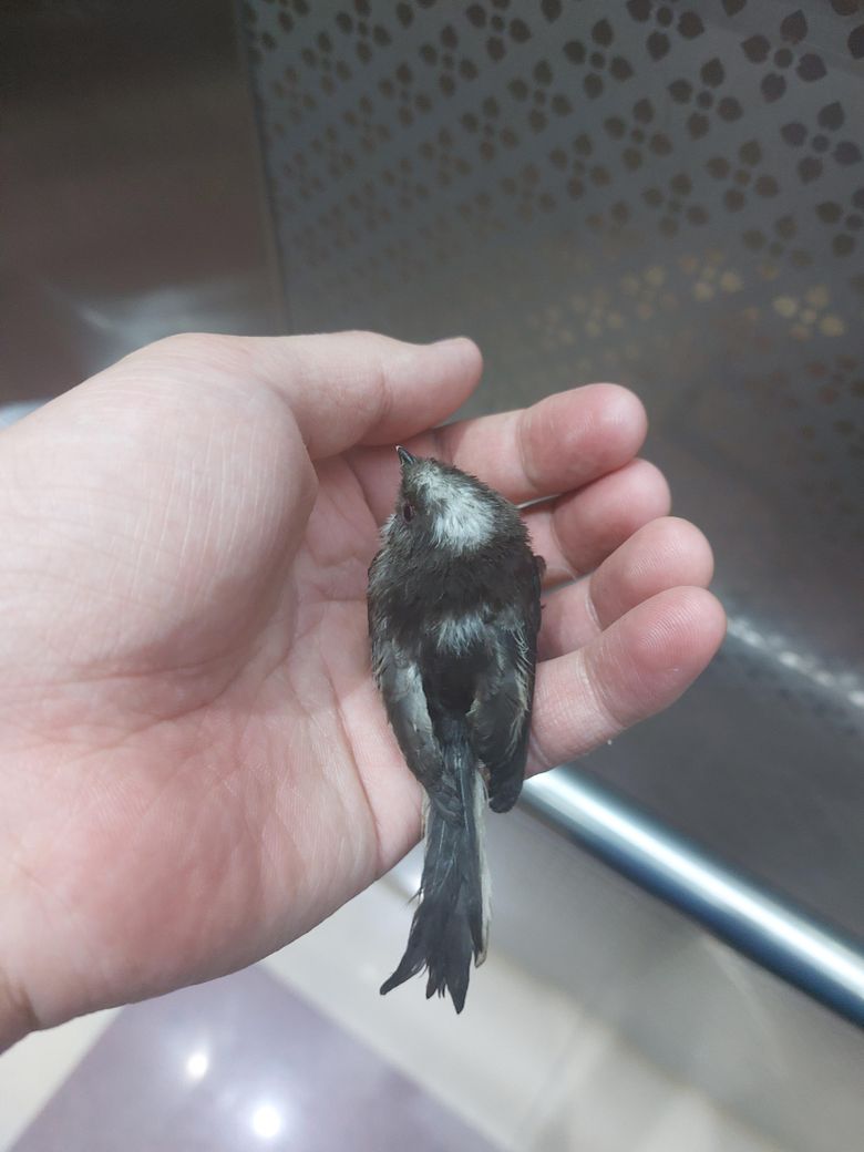 엘리베이터 안에서 있었는데 이 새의 이름이 궁금합니다.. 일단 풀밭에 두었는데 다친거 같더라구요... 이런 경우 어떻게 해야하나요? 동물병원에 데리고 가야 할까요..?