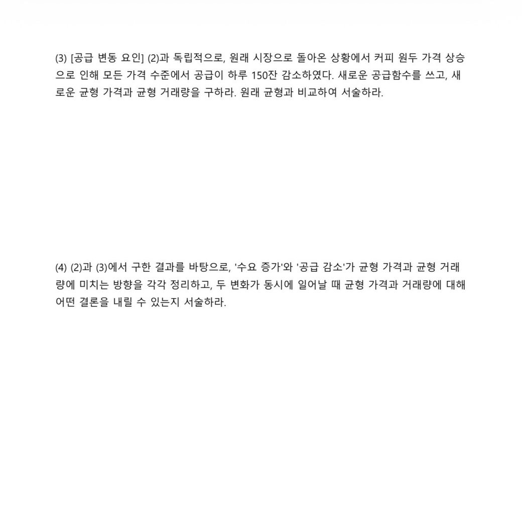 공급감소로 균형거래량이 520->460잔이 되는 변화가 동시에 일어난다명 균형거래량은 증가하나요?아니면 알수 없다가 답인가요?