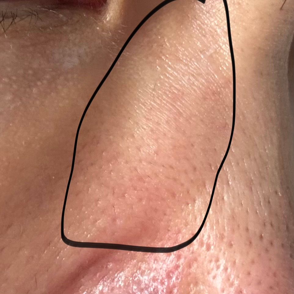 콧대 랑 앞볼사이에 사진처럼 흉살이.. 생겼는데