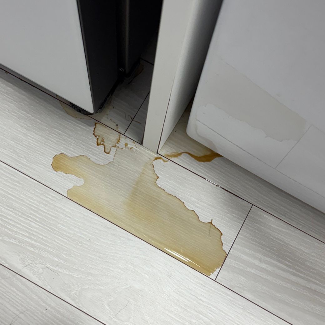 일단 수리기사 불러보니 누수의심없고 물 색깔보니가 냉장고같다고 하시는데, 발견할때 냉장고바닥도 쓸개로 쓸어봤는데 젖는것도 안나왔거든요ㅡㅡ 세탁기살짝 들어올려 빼보니 세탁기있던 자리 좌측안쪽도 물이 고여있었어요