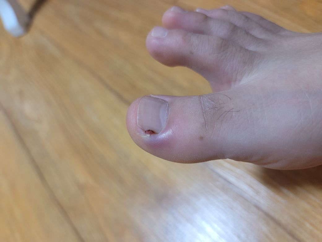 1-2주전에 오른발엄지발가락발톱안쪽을 무리하게 짜르다가 피가 나고 아파서 반창고를 붙여서