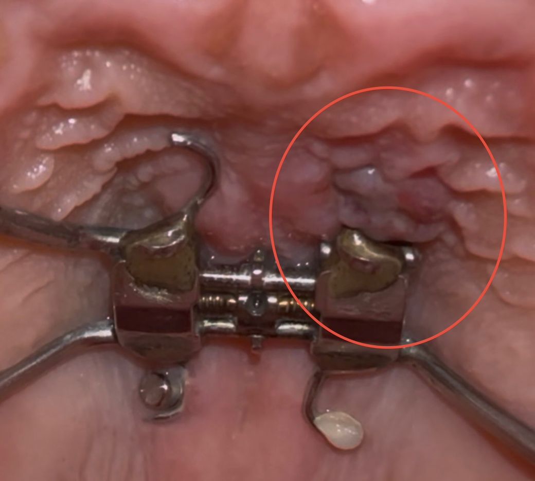 통증이 있다면 예약일 상관없이 치과를 바로 가보세요. 단순 입천장 부위 연조직 증식이 아니라 장치 자극에 의한 염증상태로 보이기도 합니다.