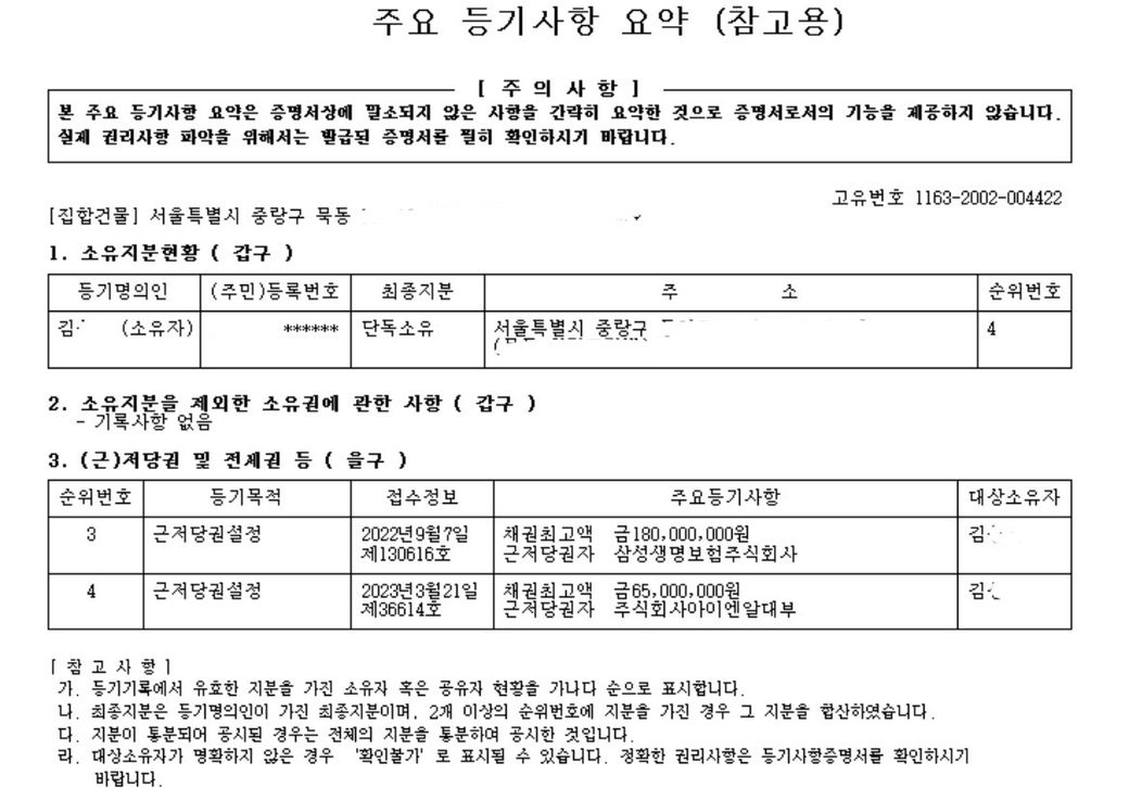 주담대 있다고 말씀해주셔서 등기부등본을 보았더니 저정도 있네요. 위험한 집일까요?