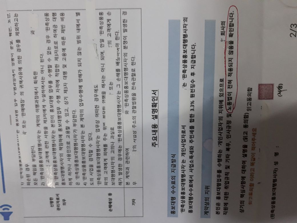 근로자계약서가 아닌 판촉상품홍보대행 계약서네요
